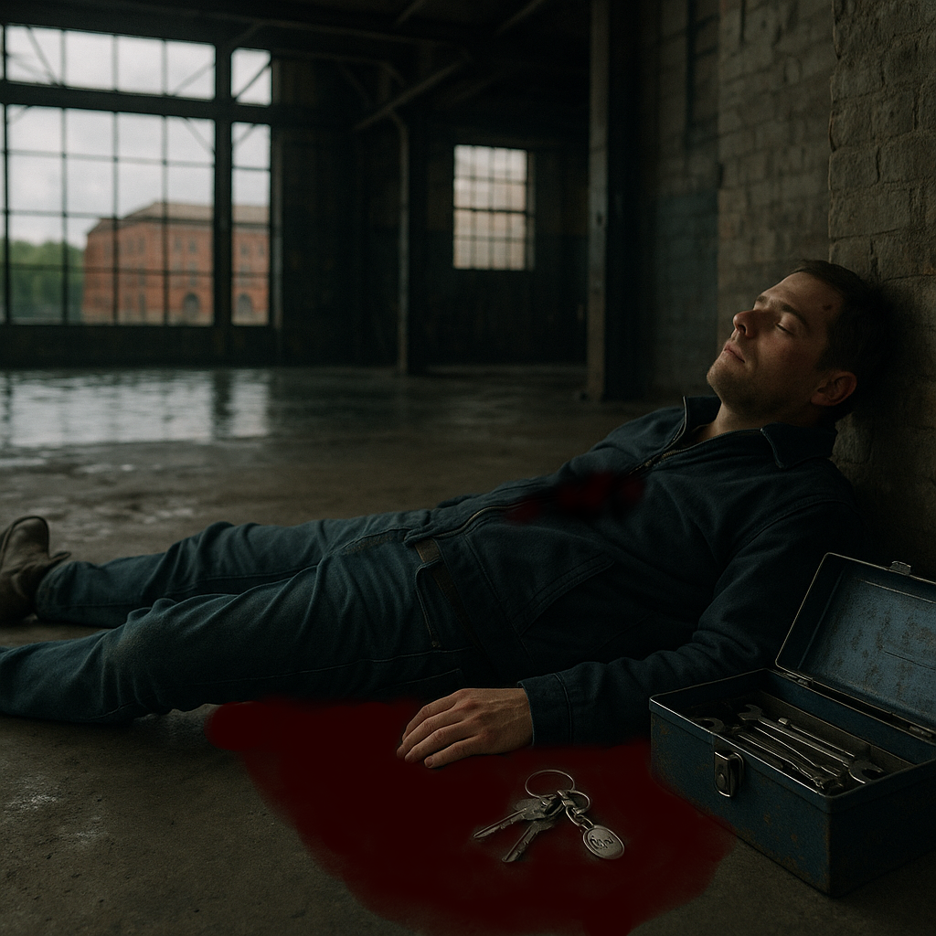 In einer Ecke der Halle lag ein Mann – tot, sauber erschossen. Keine Ausweise, keine Papiere, nur ein Handy in der Jackentasche. Der Geruch von Öl und kaltem Metall lag in der Luft.
