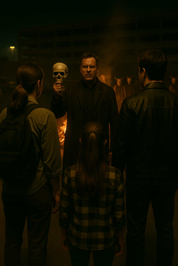 Draußen knieten Menschen um ein Feuer aus Palettenholz. Auf ihren Köpfen trugen sie Schädel. Auf einer improvisierten Trage lag Fleisch – roh, dampfend, mit einem Tuch bedeckt, das einmal eine Flagge gewesen war.