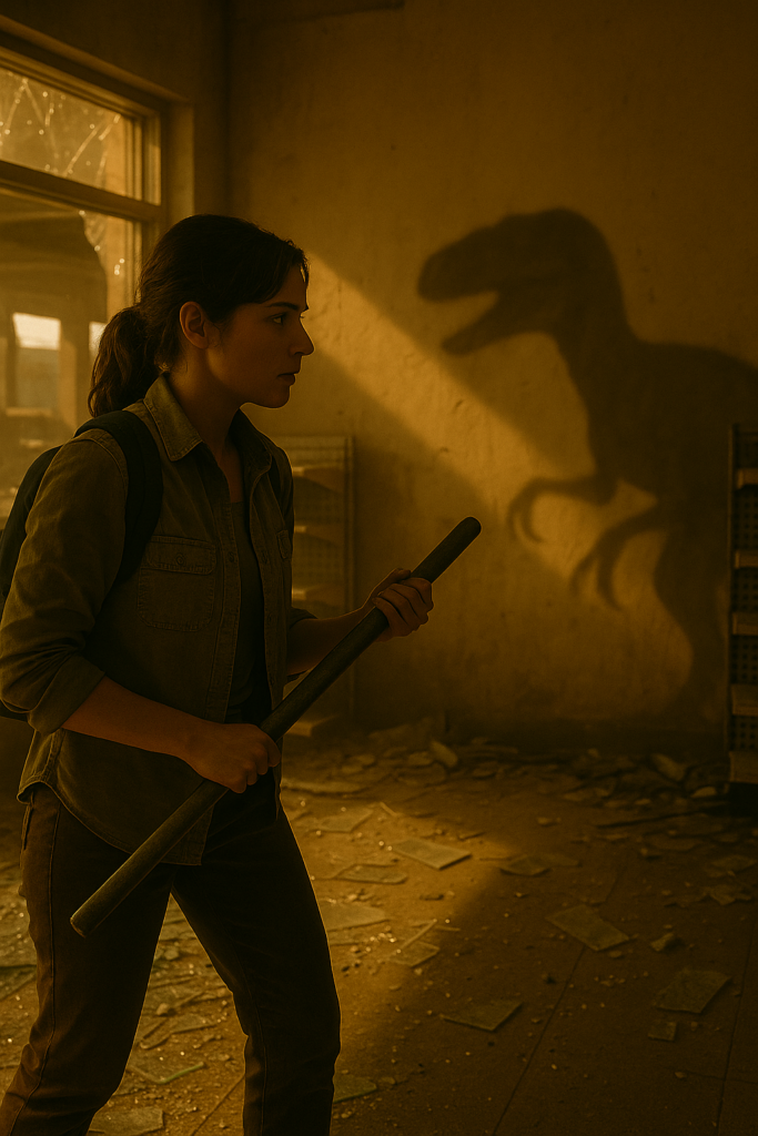 Einer der Raptoren stürzte sich auf Lena. Sie rollte zur Seite, schnappte sich einen Metallstab, schlug zu. Knochen knackten. Samira schleuderte eine brennende Fackel in die Tür – das Benzin auf dem Boden zischte. Ein Feuerball fraß sich durch das Gebäude.
