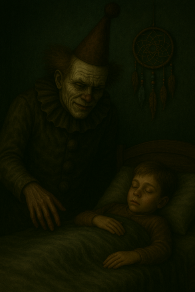 Im Traum trat Elias dem Clown entgegen. Um sie herum wirbelten alte Zirkuszeltreste, Schattenfiguren und vergangene Albträume. Doch Elias blieb ruhig.