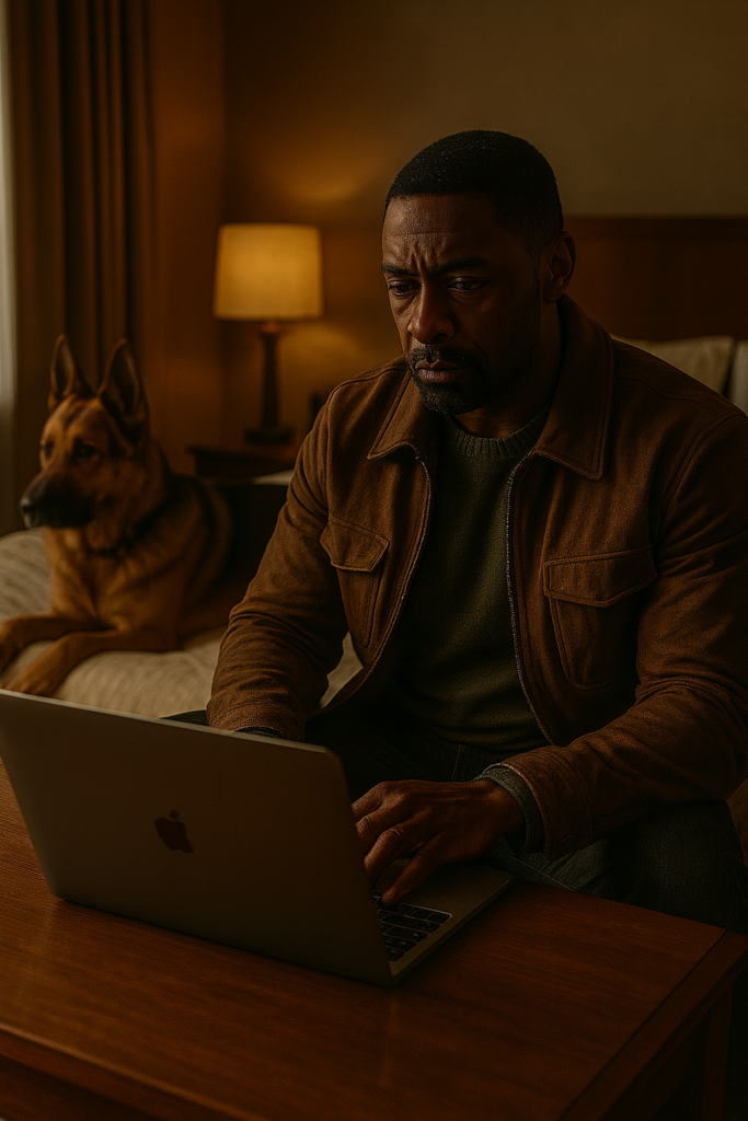 Später, in einem verlassenen Motelzimmer, saß James über seinem Laptop. Das schwache Licht der Lampe warf lange Schatten über die Wände, während Rex auf dem Bett lag und jedes Geräusch im Flur misstrauisch verfolgte.