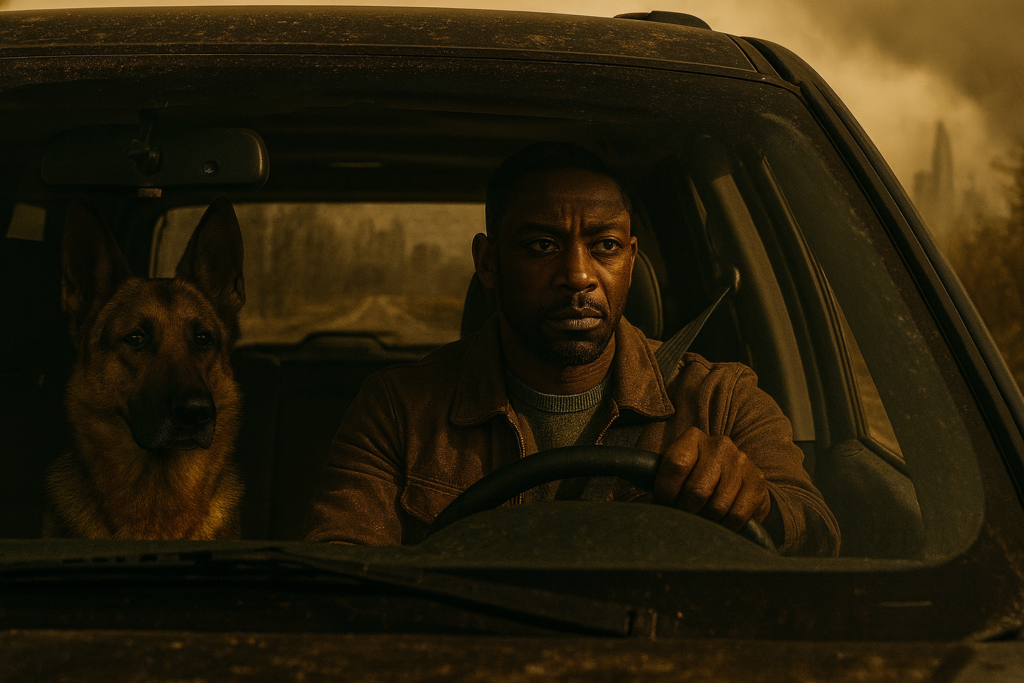 Der Motor des Wagens brummte leise, während James den Blick starr auf die verlassene Straße vor ihm richtete. Rex saß neben ihm, die Ohren aufgestellt, aufmerksam wie immer. Der Schäferhund war mehr als ein Begleiter – er war die letzte Verbindung zu einer Zeit, in der sie noch eine Familie gewesen waren.
