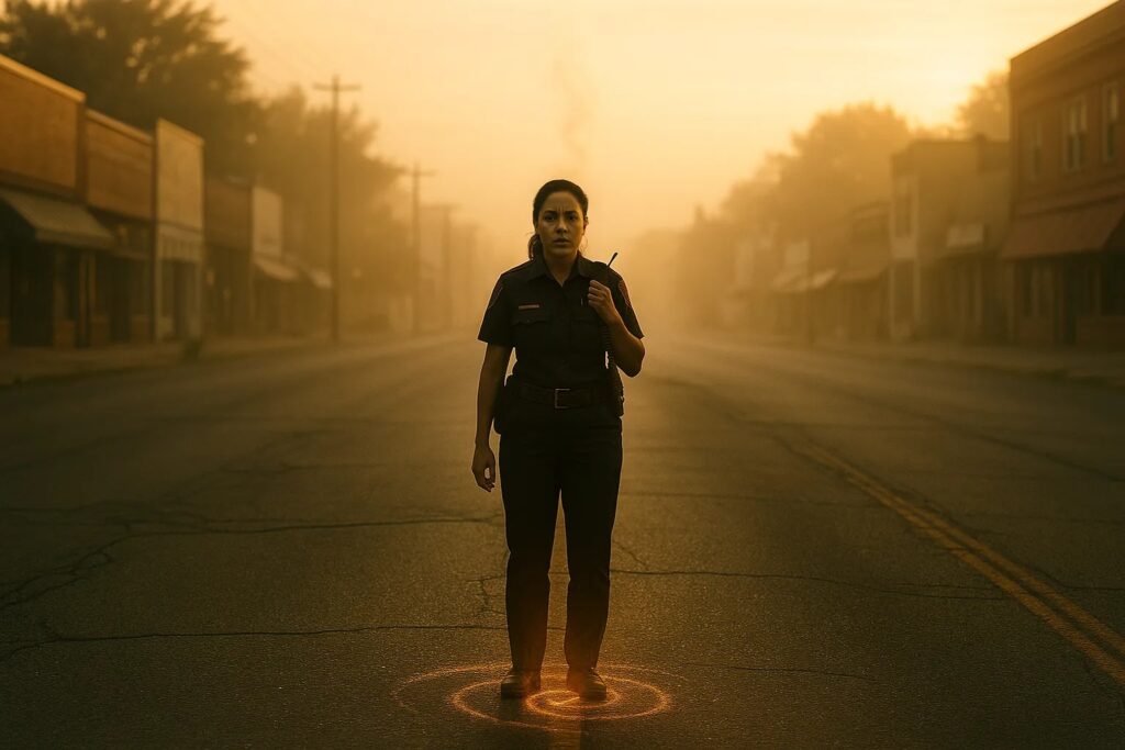 Carla saß auf der Treppe des Polizeireviers, die Waffe neben sich, den Blick auf die leere Main Street gerichtet.