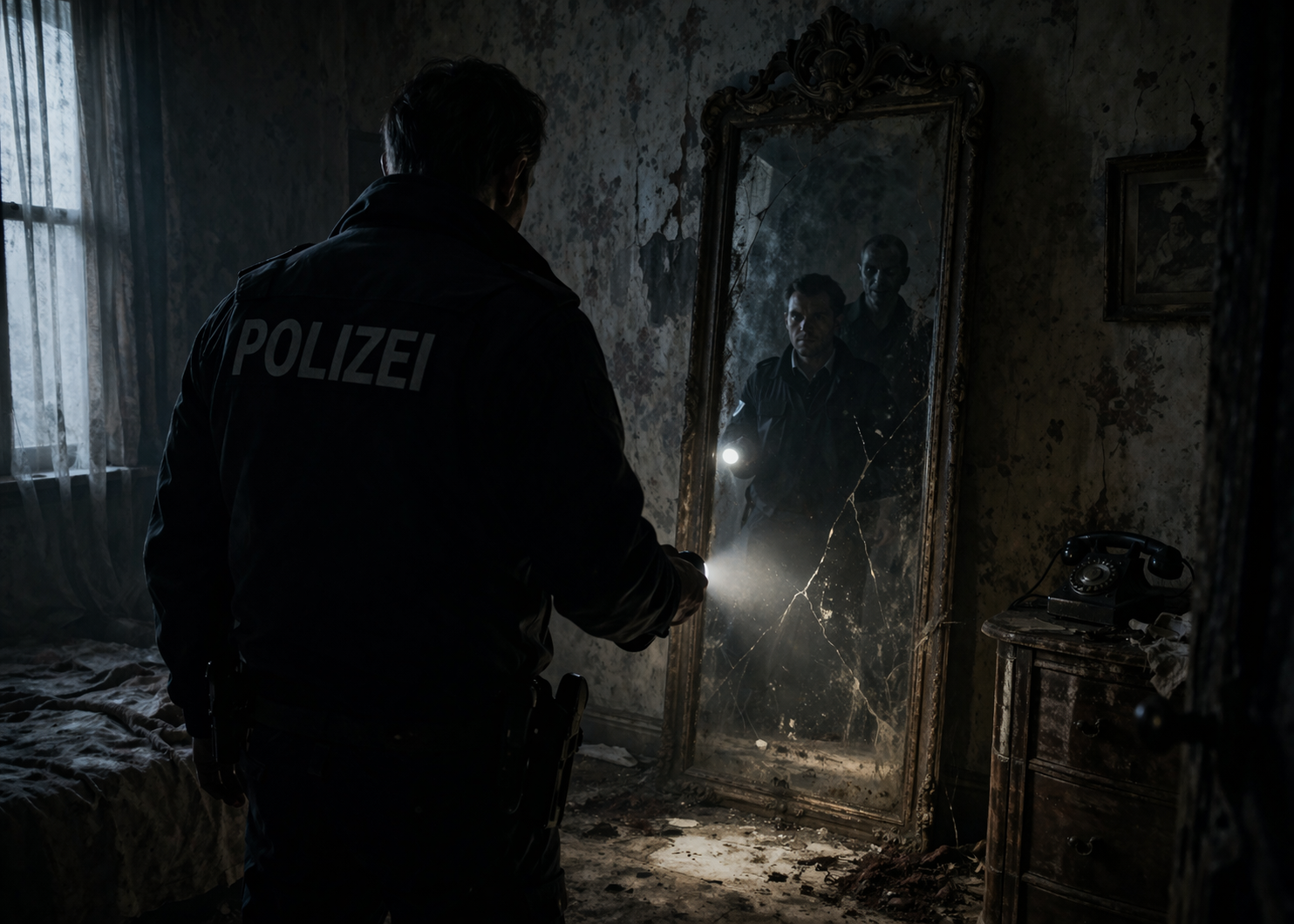 Im Schlafzimmer stand ein alter Spiegel. Zerkratzt. Blind. Und davor – eine Gestalt.