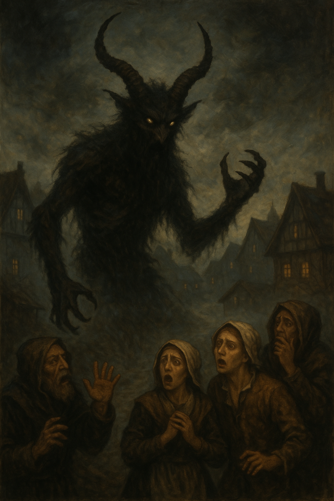 Es war der dritte Neumond des Jahres, als das Wesen zum ersten Mal gesehen wurde. Düsterwald, ein abgelegenes Dorf tief im Herzen des dunklen Waldes, lag seit Jahrhunderten im Schatten alter Legenden. Man sprach von einem gehörnten Dämon, der mit jedem Zyklus des schwarzen Mondes erwache – der „Grimmenherr“.