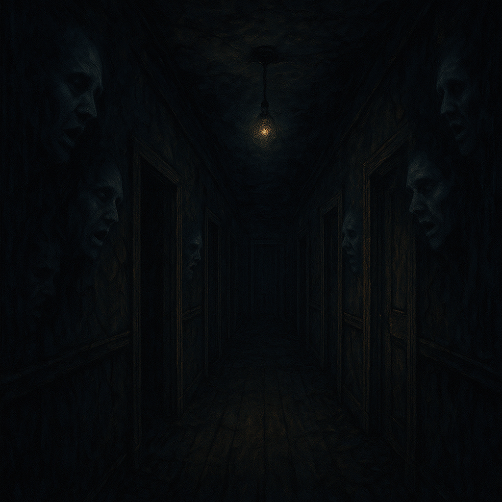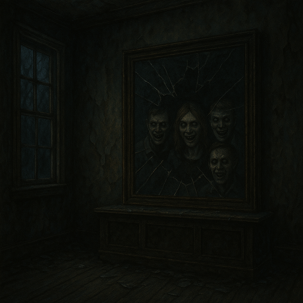 Am Ende des Korridors stoßen sie auf eine schwere Tür. Sie ist abgeschlossen, aber aus dem Inneren dringt ein Kratzen, als würde jemand verzweifelt hinauswollen. Als sie die Tür aufbrechen, finden sie nur einen zerbrochenen Spiegel – und ihr eigenes Spiegelbild, das sie finster angrinst.