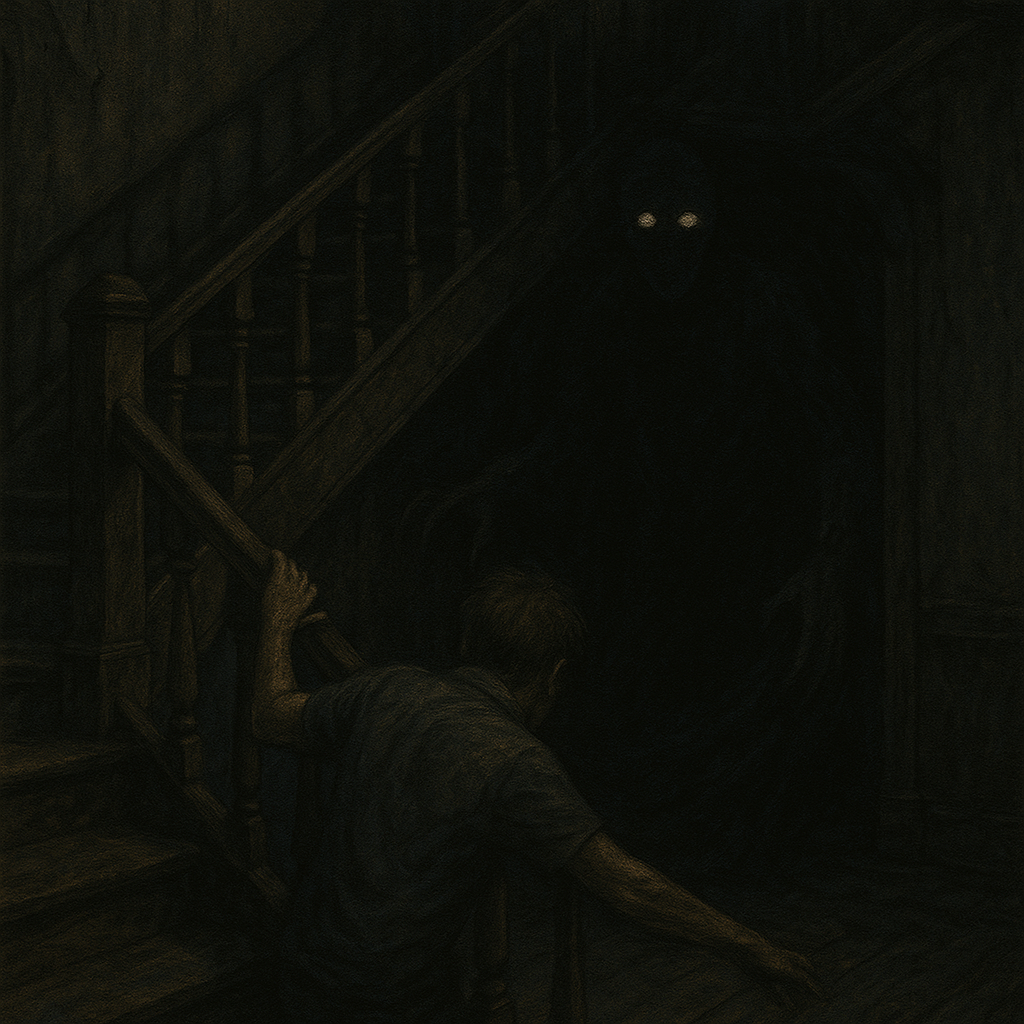 Im Inneren ist es stockfinster. Nur das Knarren der Dielen begleitet ihre Schritte. Doch plötzlich hören sie ein Flüstern – leise, nah, direkt neben ihrem Ohr. Die Stimmen wiederholen ihre eigenen Gedanken, als hätte das Haus sie längst durchschaut.
