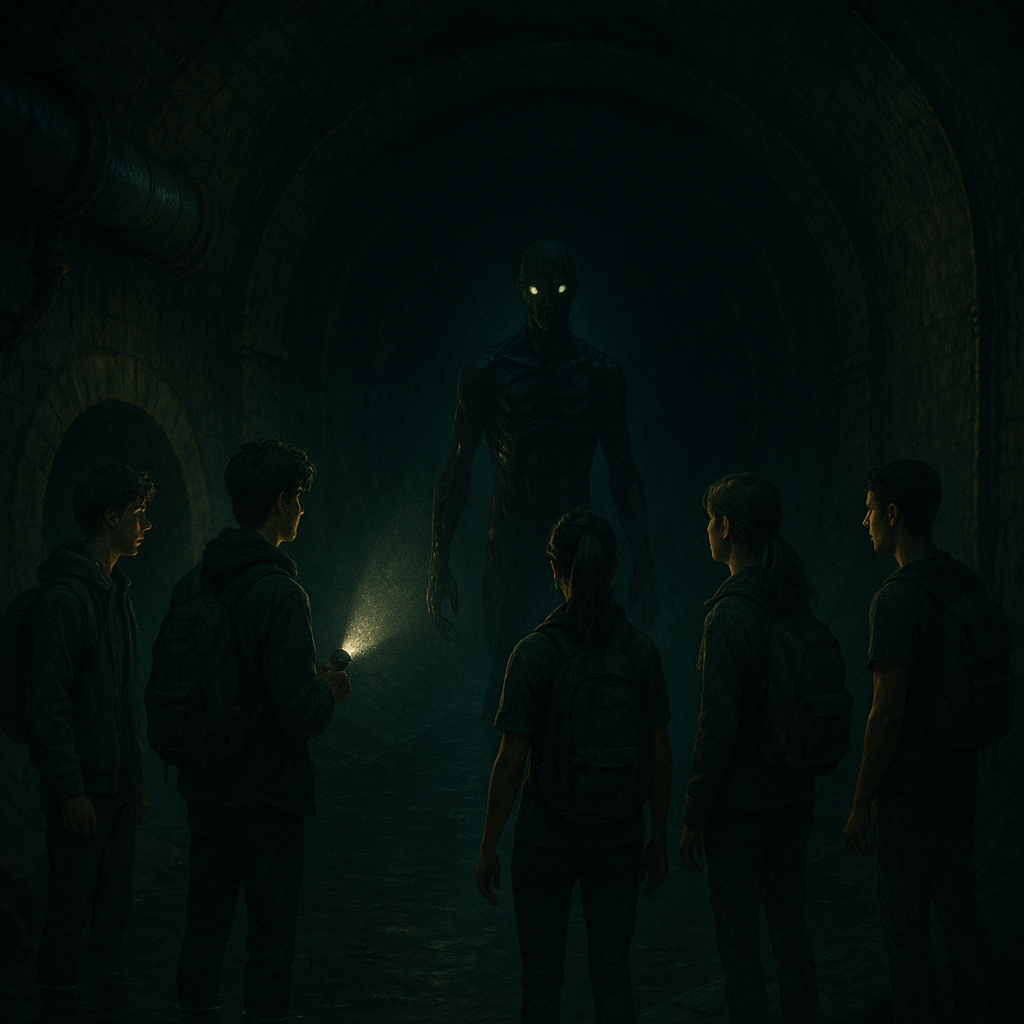 Die fünf kannten sich seit ihrer Schulzeit, vereint durch ihre Neugier und den Hang zum Ungewöhnlichen. In einer mondlosen Nacht stiegen sie durch einen alten, vergessenen Zugang in das unterirdische Netz hinab. Die Luft war feucht und schwer, das Echo ihrer Schritte hallte wie ein fremdes Atmen durch die Gänge.