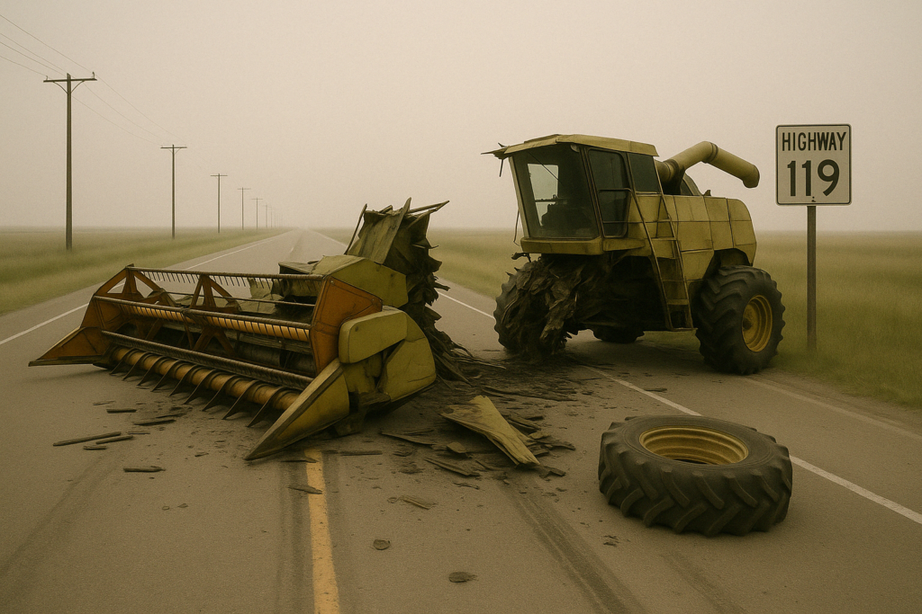 Um exakt 8:17 Uhr zerschellte ein Mähdrescher auf dem Highway 119 an etwas Unsichtbarem. Die Maschine krachte mit voller Wucht in die Leere – und wurde in zwei Teile gerissen. Der Fahrer war auf der Stelle tot. Der Notruf wurde gewählt, doch die Verbindung brach mitten im Satz ab.
